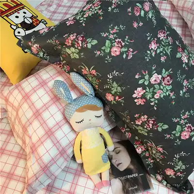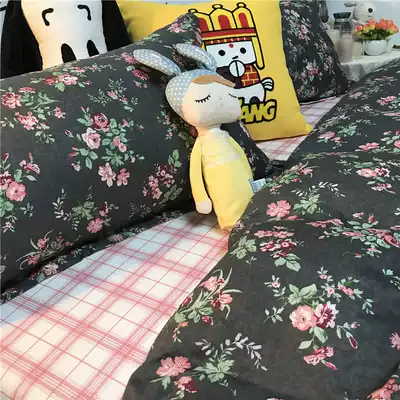 Small fresh cotton four-piece American pastoral small broken pollen color plaid cotton quilt cover bed single bed Li style quilt