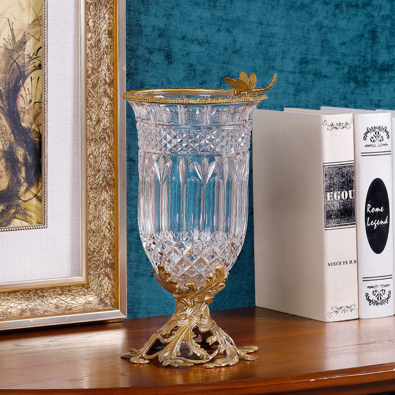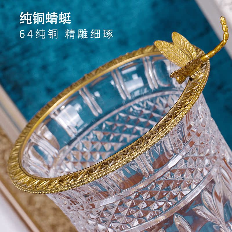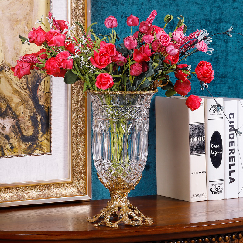 European Crystal with Copper Vase Vase plug luxury high-end pieces American home decoration living room porch flower