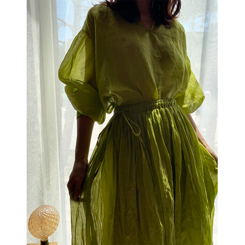 CDS Kloc 2021 Spring Summer 100% Pure Hemp 60 Weave Ultra-pro-skin Butter Fruits Foreign Peach Green Linen Suit