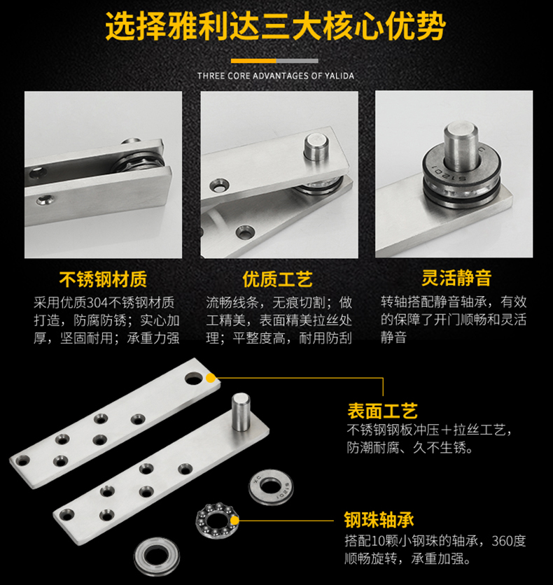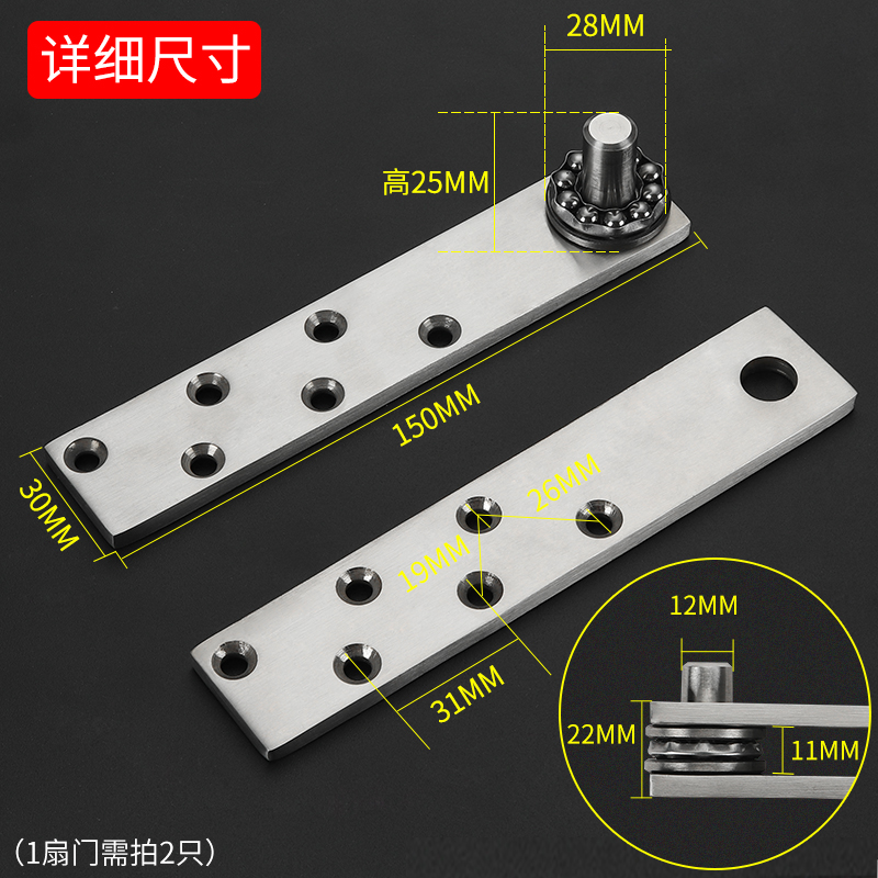 Thickened stainless steel rotating shaft wood door upper and lower hinge heaven and earth shaft concealed positioning hinge 360 degrees rotary axis door shaft