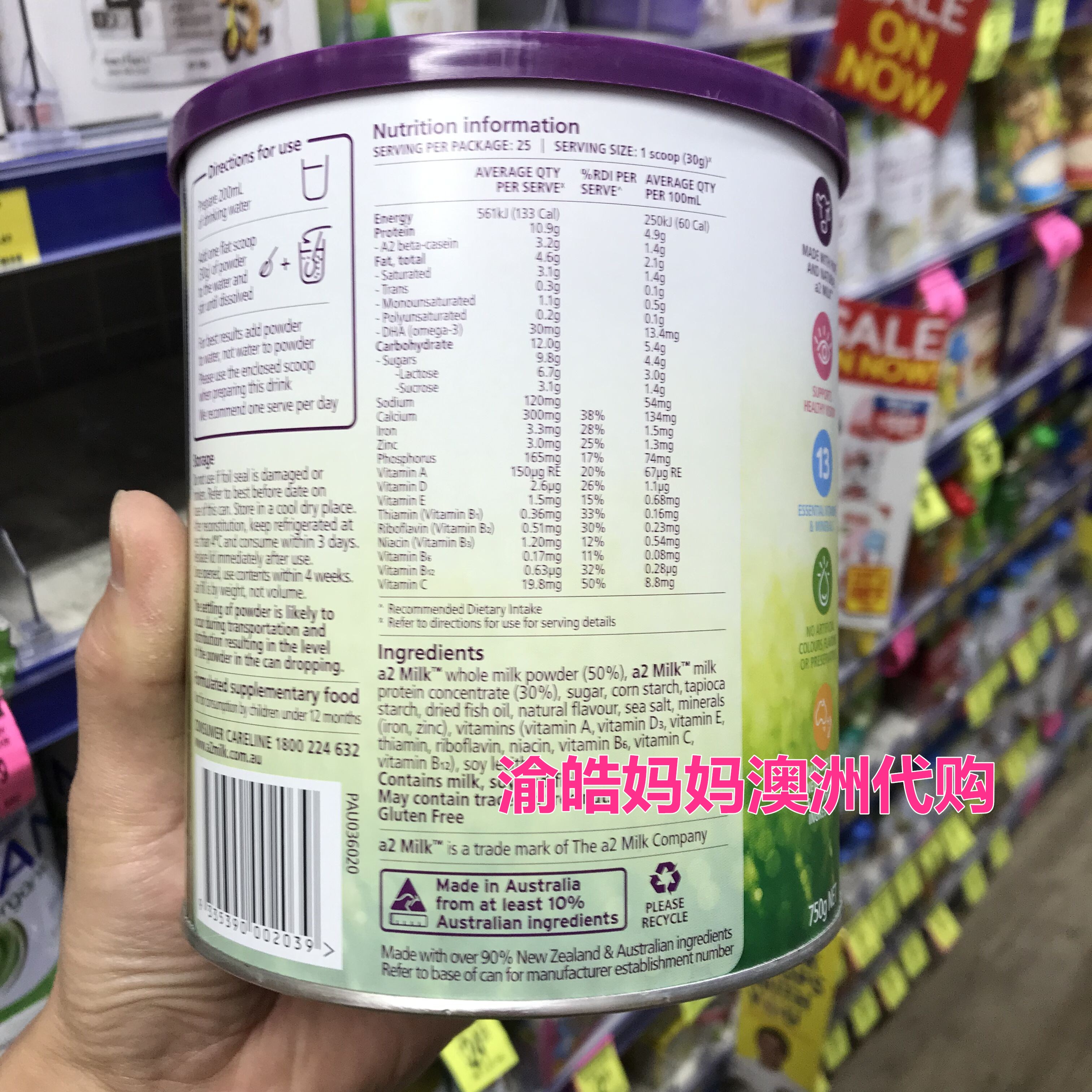Australian a2 children grow nutritious milk powder 4-12 years old with several vitamins Original imported milk powder 750g