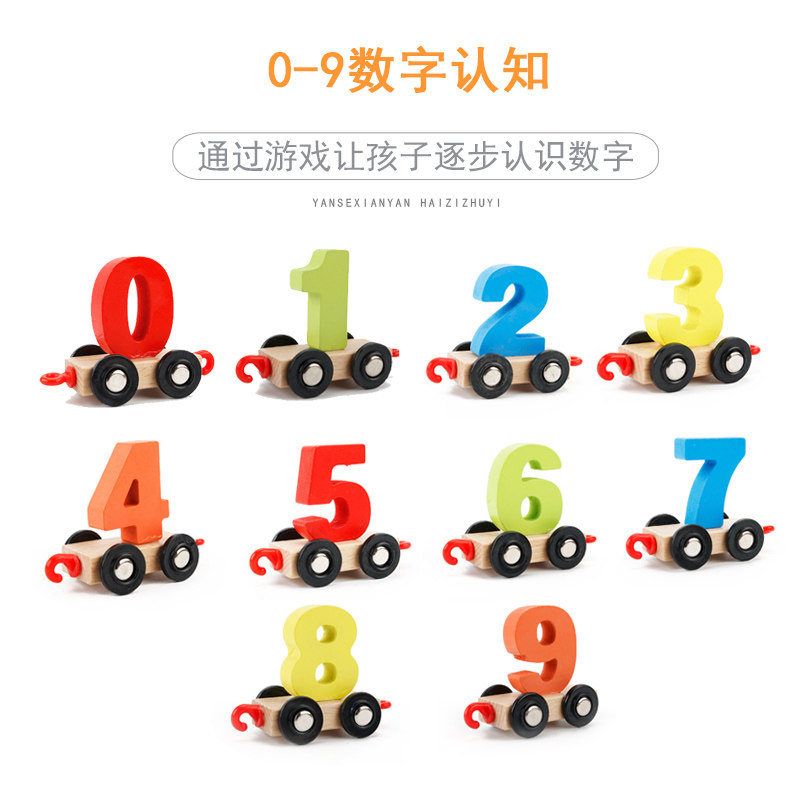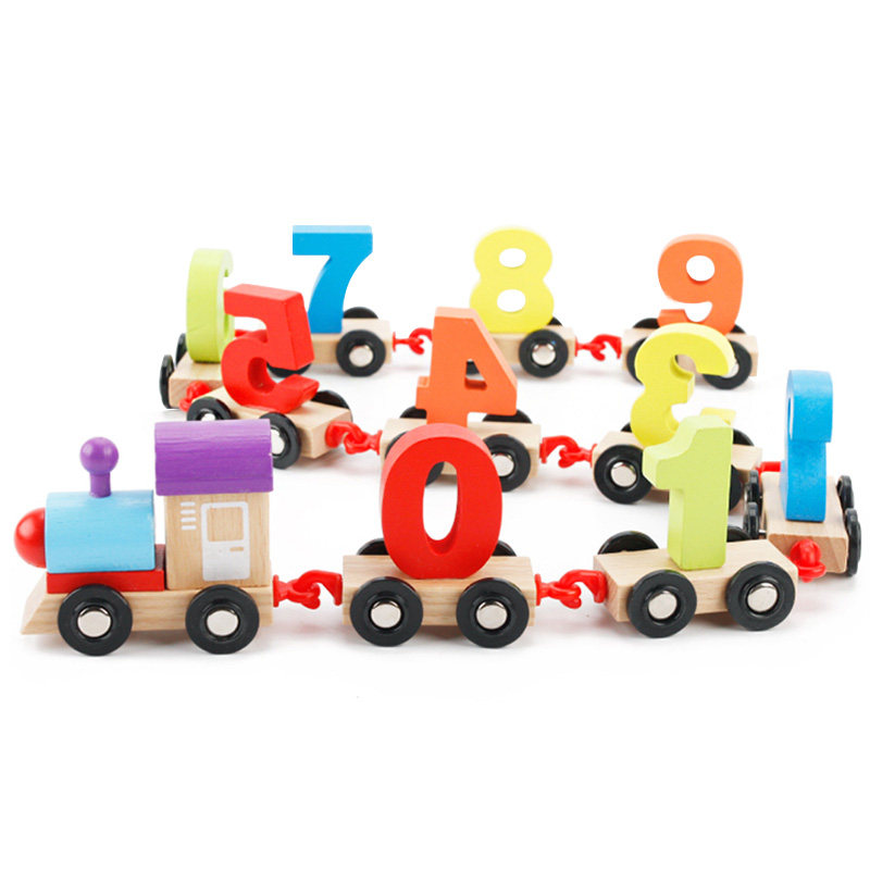 Digital small train children Puzzle Assembling Toys Young Children Early Teaching Digital Cognition 1-3 Years 6 Babies Wooden Building Blocks