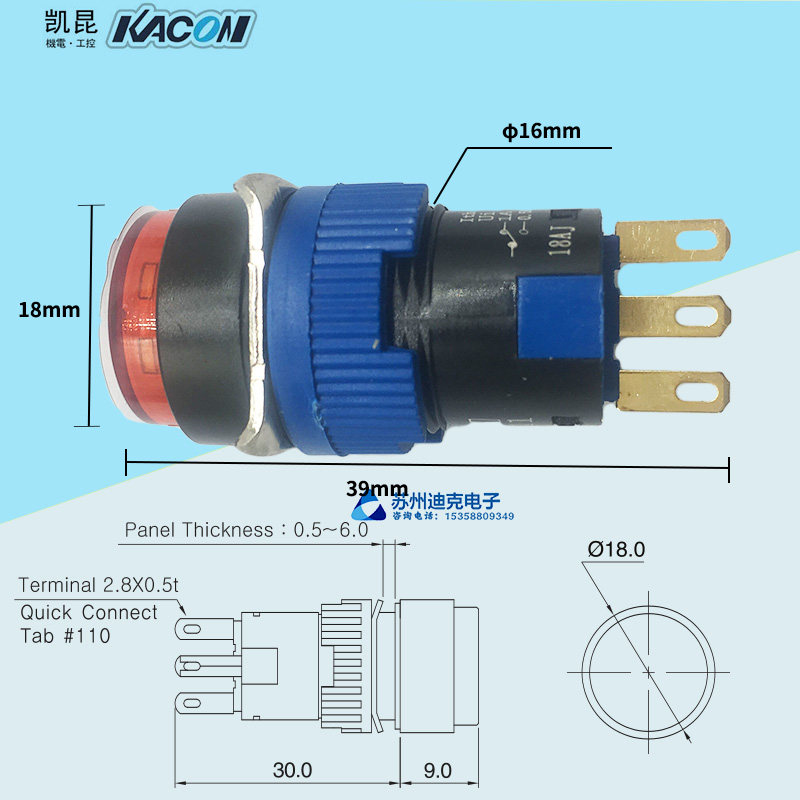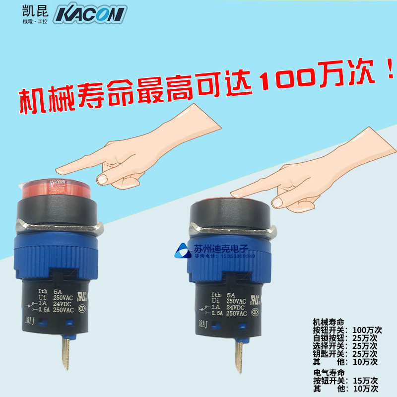 KACON Korea KAIKUN 16mm push button switch K16-312-322-332 Self-locking gold plated contact point 2a 2b