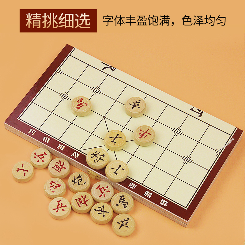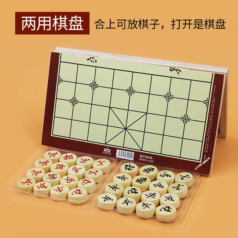 Chinese Chess Children's Portable Folding Board Solid Wood Chess Home Set Wooden Student Classic Intellectual Toys
