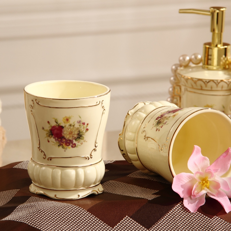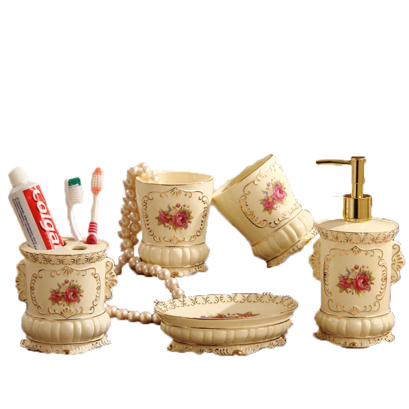 Eurostyle Ceramic Bathroom Five Pieces Sets of bath room Supplies washing suit toothbrush gargling cup kit toothbrushing cup Home
