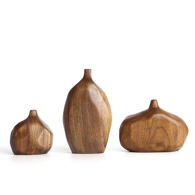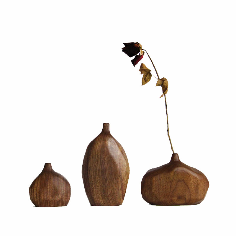 Original design New Chinese style Japanese Zen wood dried flower vase Creative flower arrangement Flower vase Wooden handicraft decoration