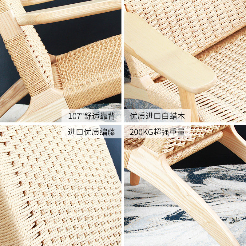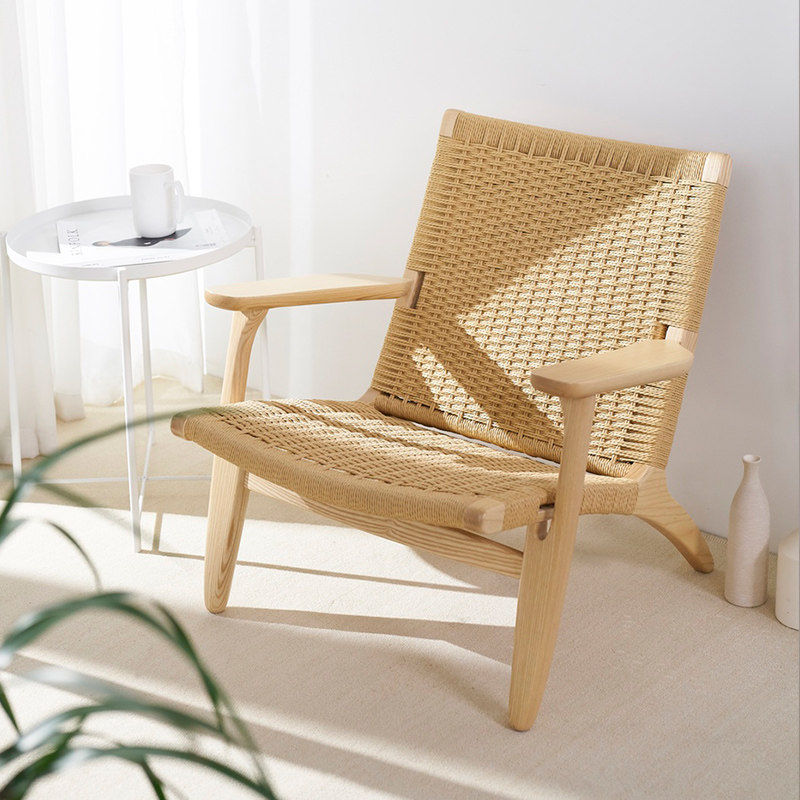 Xingwei designer rattan chair simple balcony solid wood leisure chair home Nordic single sofa chair back chair