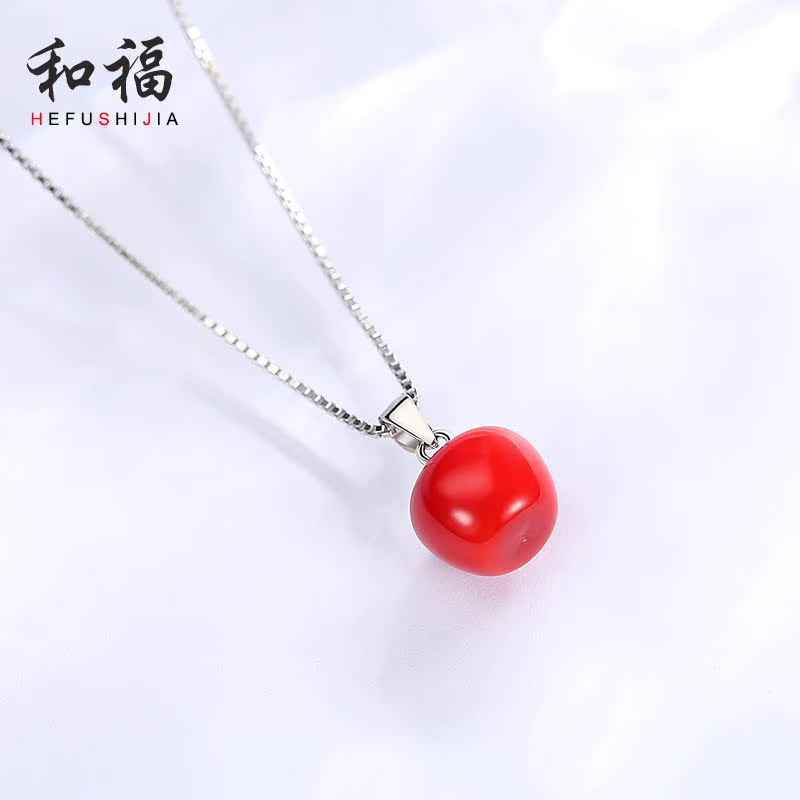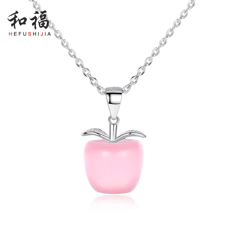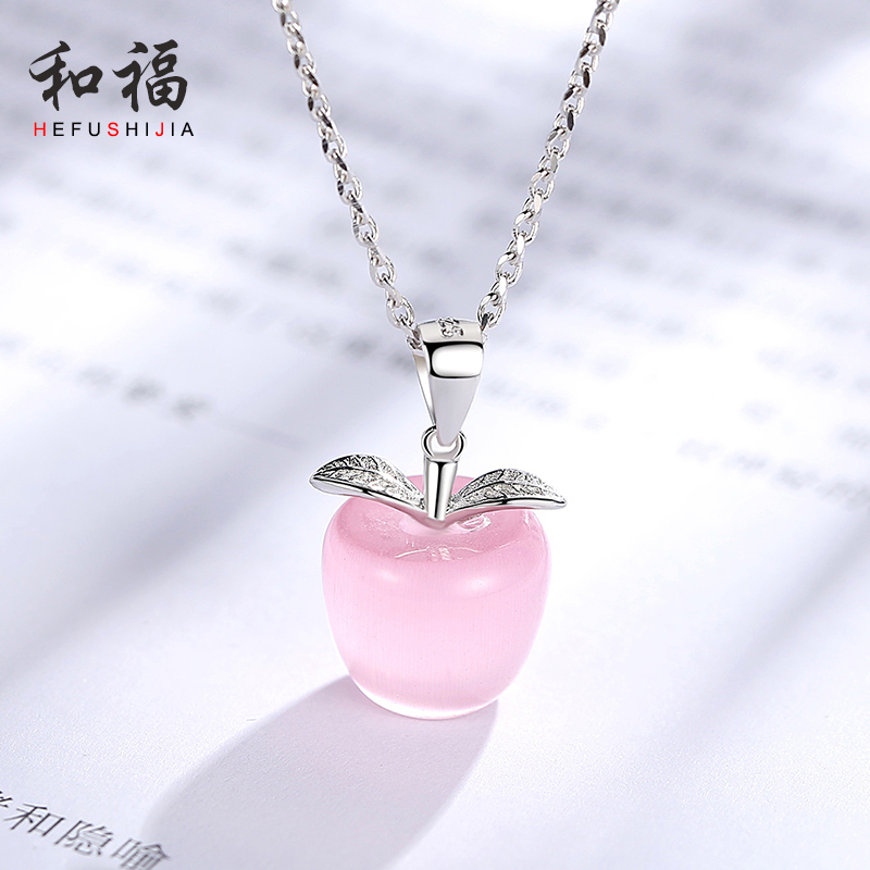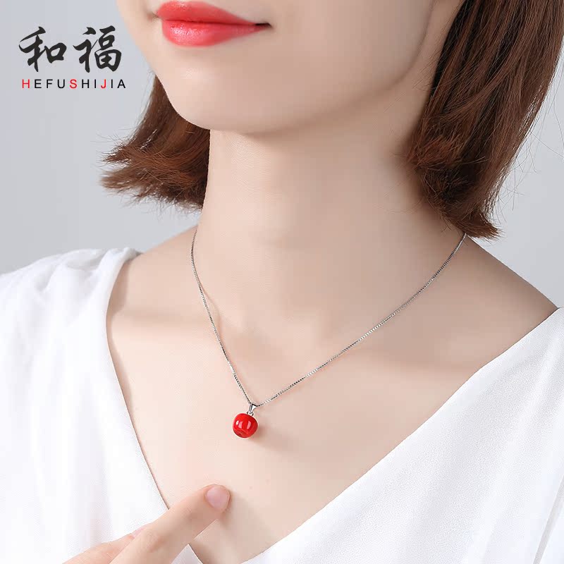Christmas powder crystal red apple necklace woman pure silver lock bone chain creative personality romantic Christmas Eve birthday present