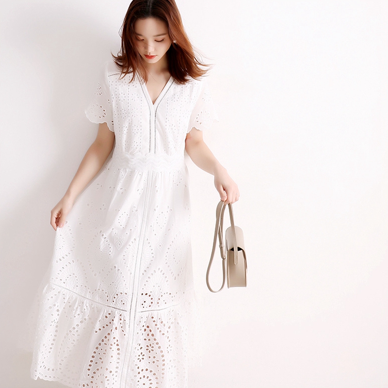 JOLIMENT skirt female 2021 new white dress fairy super fairy sweet temperament embroidered V-neck long skirt