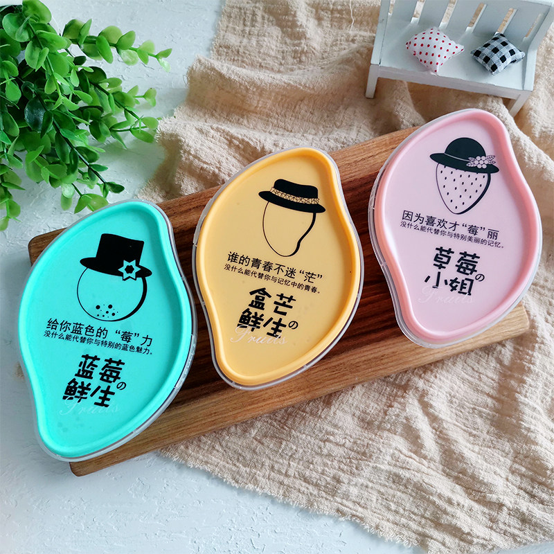 20 sets of powder cover with strawberry sticker 20 sets of blue cover with blueberry sticker 20 cover yellow cover with mango sticker 50 set of pink cover with strawberry sticker 50 sets of blue cover with blueberry sticker
