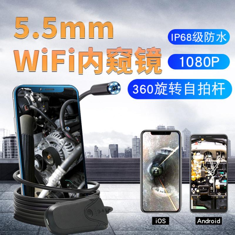 WiFi Endoscopic High-definition 5 million 5 million 5 5mm Monitor Pipe Automotive Steam Accumulation Carbon Engine Inspection Camera