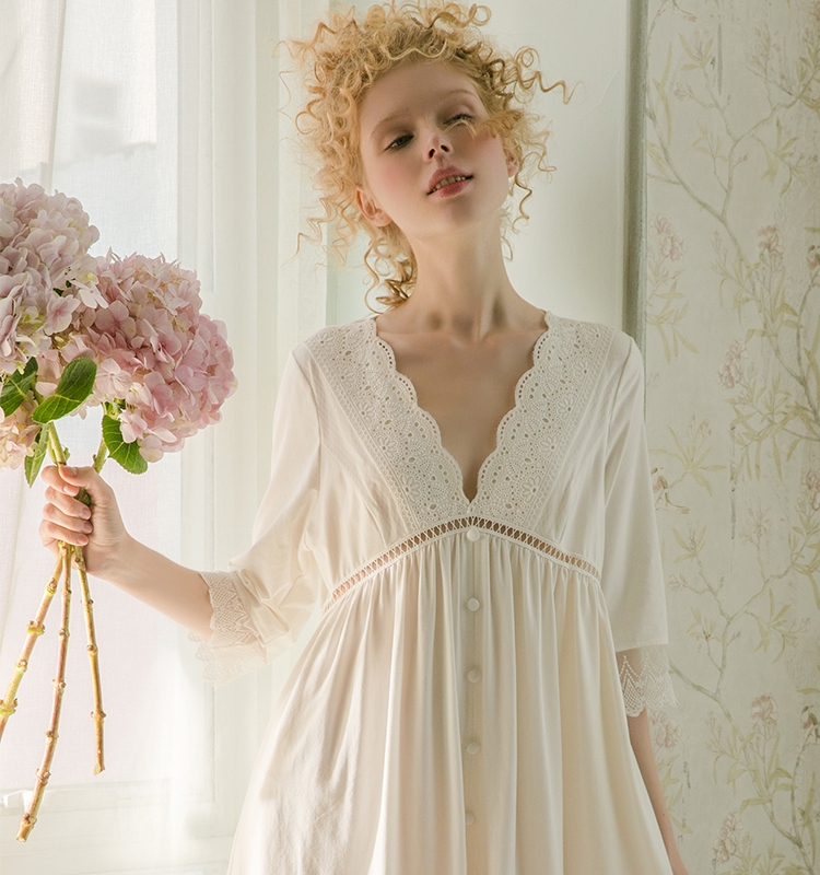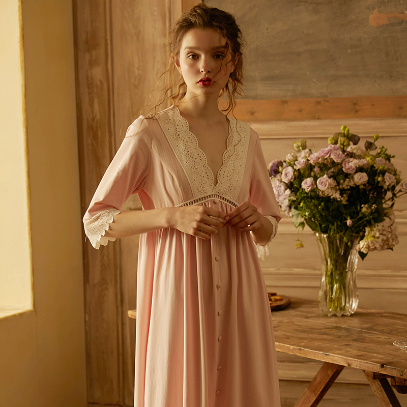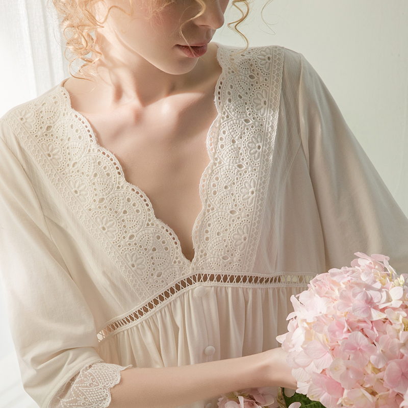 Du Xi Original Sleeping Dress Summer Bottle Cotton Retro Cotton Retro Lace Long Sleeve Household Wears