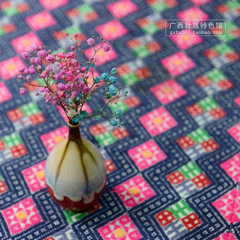 Zhuang Zhuang embroidered brocade thickened fabric National Zhuang brocade fabric Hand-picked embroidery tablecloth tablecloth material