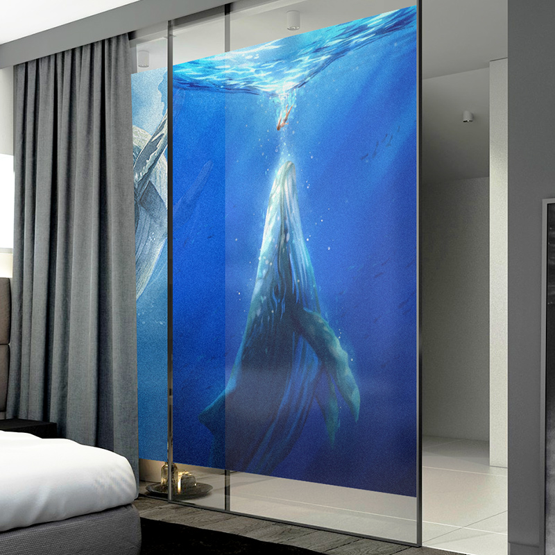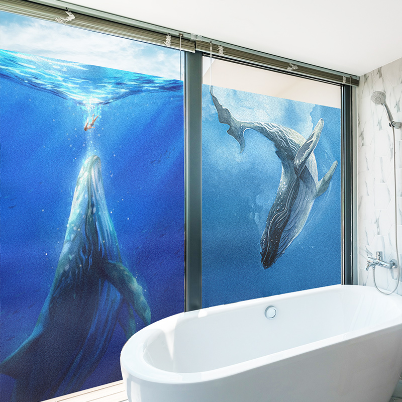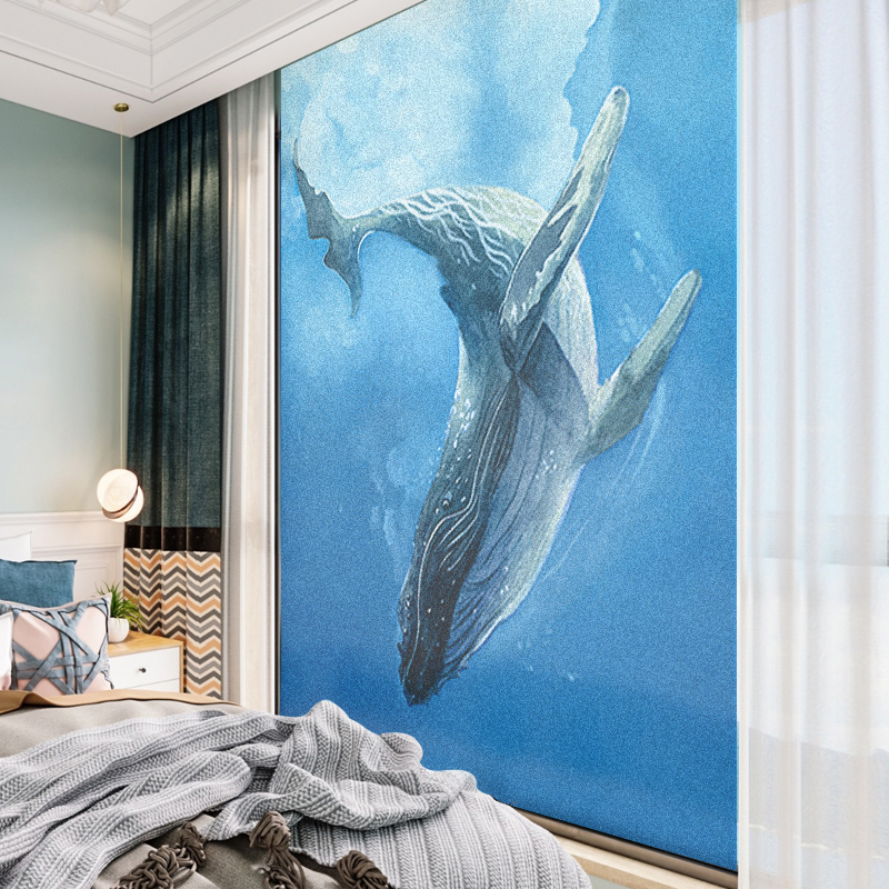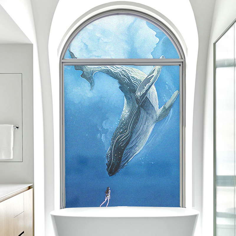 Blue Whale Shading Frosted Glass Sticker Home Bathroom Makeup Room Decoration Window Glass Stickers Light Transmission Opaque