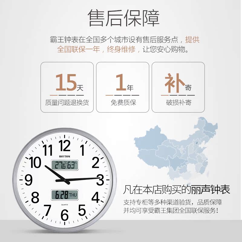 Lisheng simple clock calendar big wall clock calendar temperature and humidity quartz clock home creative living room hanging watch