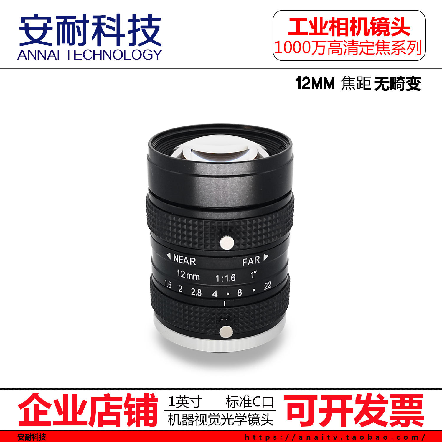 10 million HD industrial camera lens C Port 8 12 16 25 35 75 100mm1 inch C interface