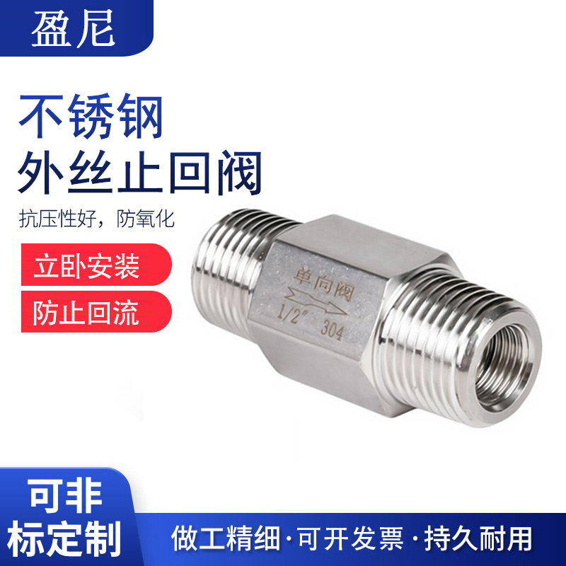 Outer wire single - direction valve 304 stainless steel external thread check valve buckle 2 min anti - flow gas check valve 4 points 3 points