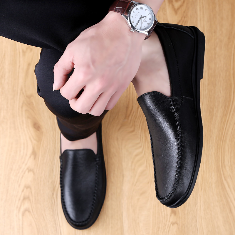 Large size leather shoes Men's casual genuine leather 45 Korean version Trend Social sloth Men's shoes 46 yards Told soft bottom bean-bean shoes