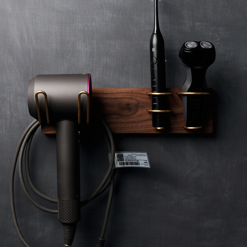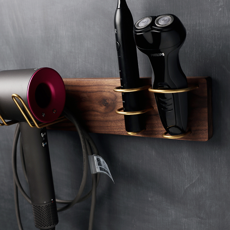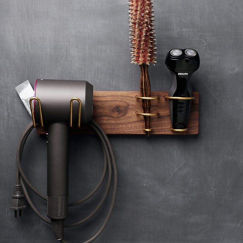 Black Walnuts Log Brass Hair Dryer Shelf Shelve Free Upper Wall Subshaved Hob Bracket Electric Toothbrush Holder
