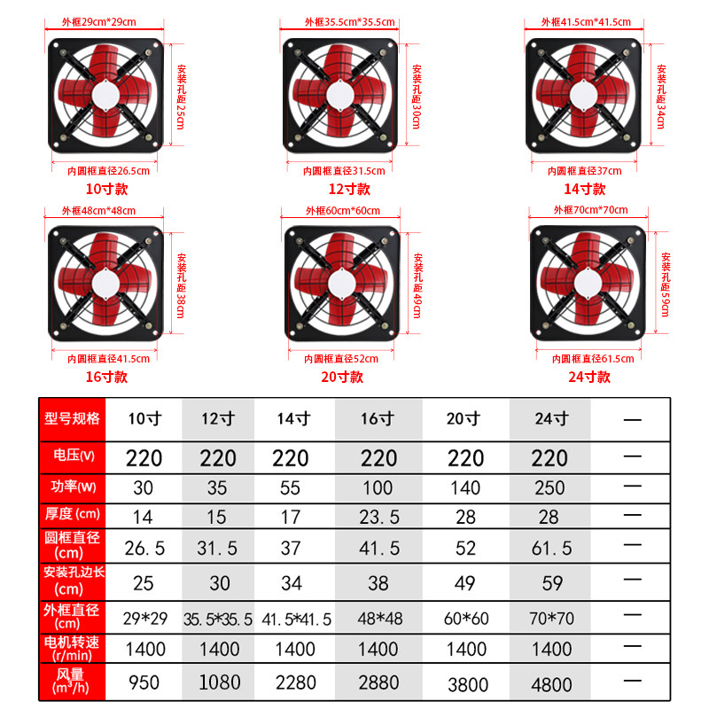 10-inch exhaust fan (send switch plug line) 12-inch exhaust fan (send switch plug line) 14-inch exhaust fan (send switch plug line) 16-inch exhaust fan (send switch plug)