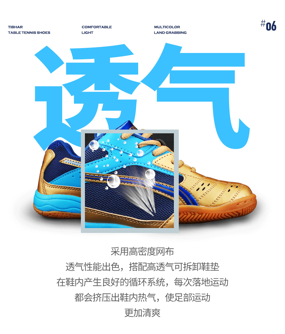 TIBHAR Germany quite plucking table tennis shoes table tennis shoes men and women non-slip and breathable sneakers new T fly