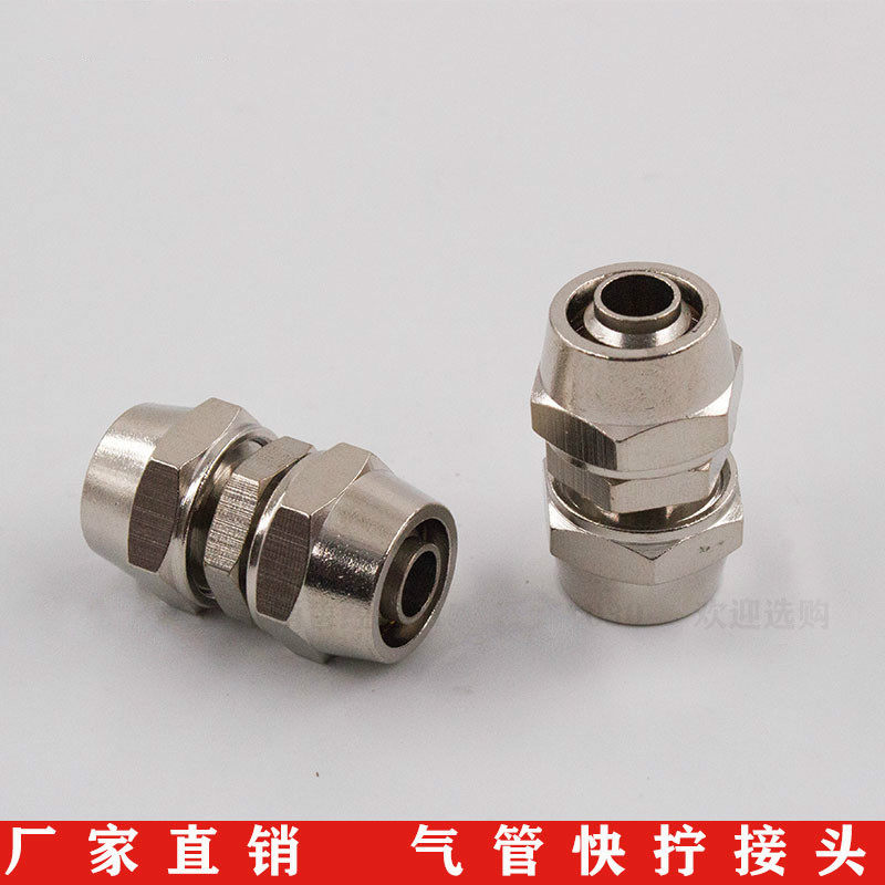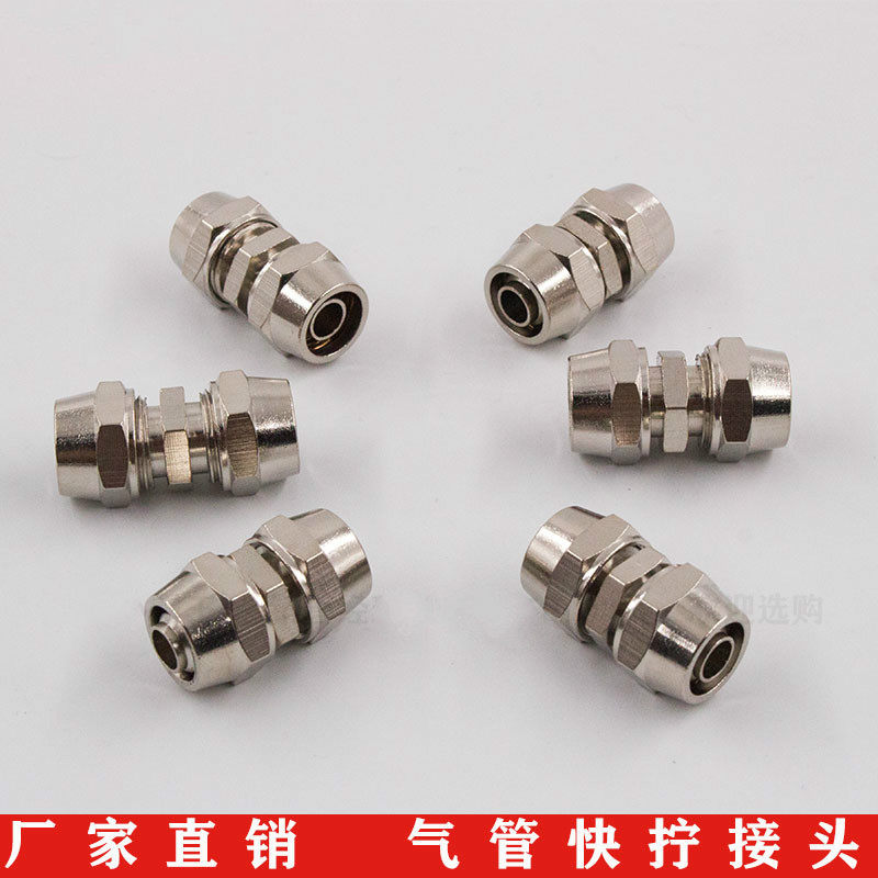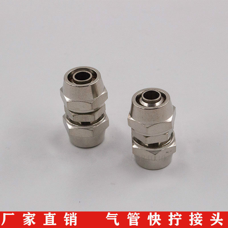 Full copper nickel-plated windpipe straight-to-screw joint PU pipe lock mother type joint 4 6 8 10 12 14 14 16MM