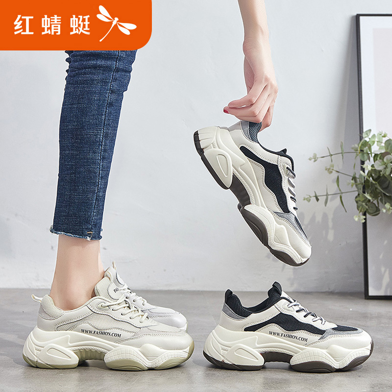 Red Dragonfly Women's Shoes 2022 New 100 Hitch Spring Summer Exploits With Thick Bottom Little White Sports Old Daddy Shoes and Chains