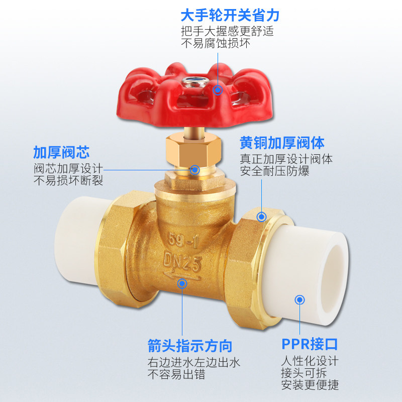 Brass thickened PPR20 25 50 stop valve valve water switch steam tap water pipe copper valve 4 points 6 points 1 inch-Taobao