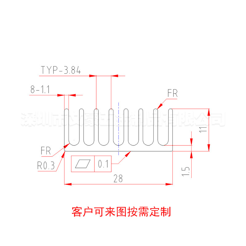 Heat sink 28*11 long 28mm gold broken groove middle hole
