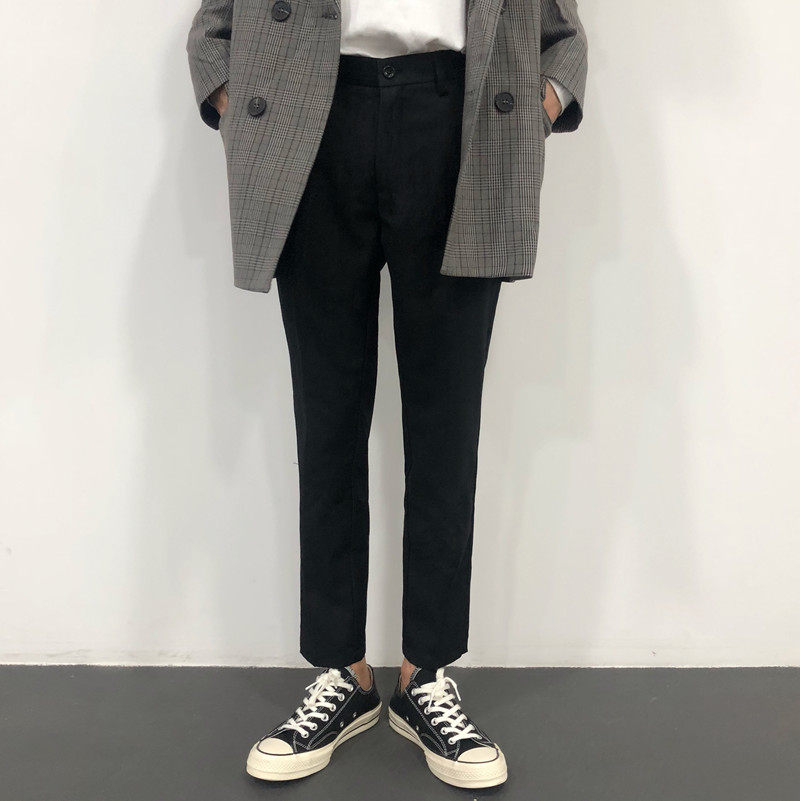 SC 20ss Korean version pure black display slim fit straight cylinder harbor wind small western clothing pants 90% smoke pipe pants casual pants men's body