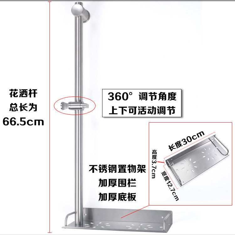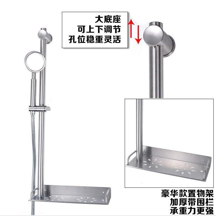 Bathroom shower shower head lift bar with rack adjustable bracket full stainless steel shower hanging shower seat