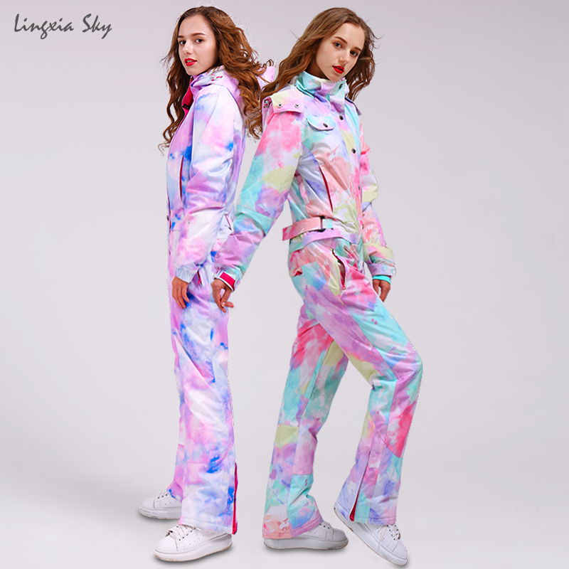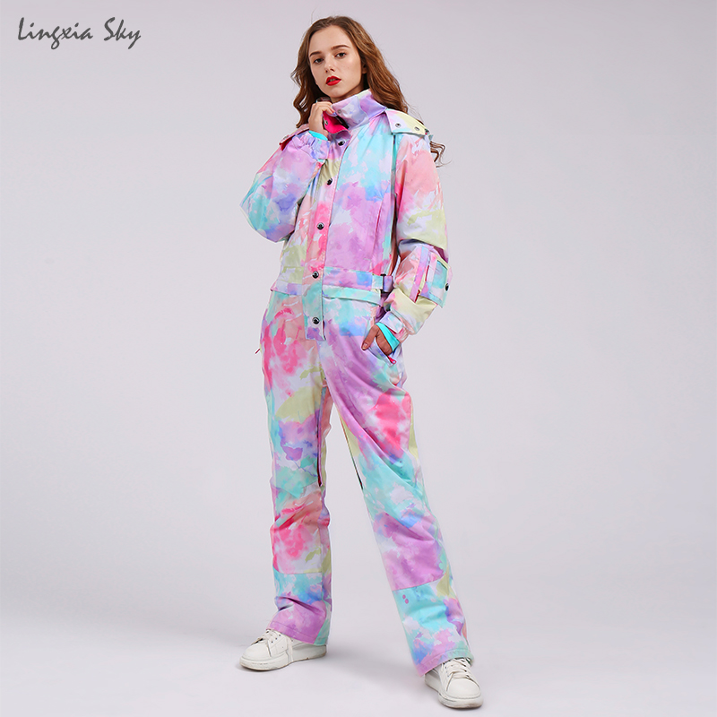 One-piece ski suit Women's snowboard double board adult children's ski suit pants suit Waterproof travel equipment thickened warm