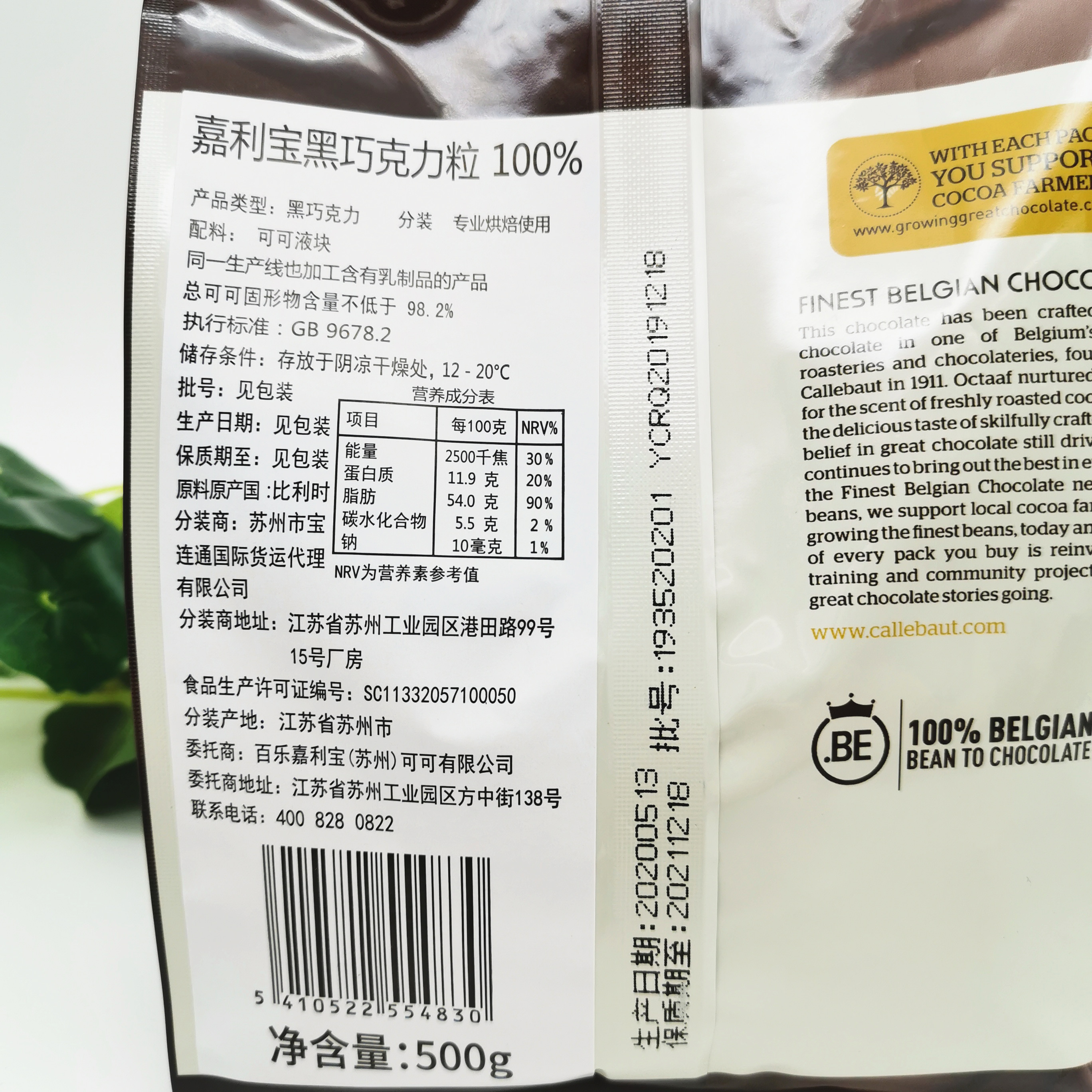 Belgium Galibo 100% No Sugar Added Pure Fat Black Chocolate Bean Cocoa Liquid 500g Bag Ketogenic
