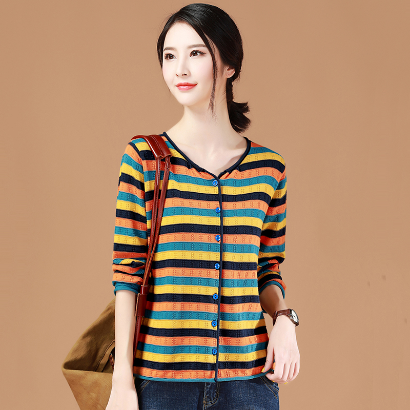Han Chao hit jacquard striped sweater cardigan 2020 autumn new loose retro literary sweater jacket