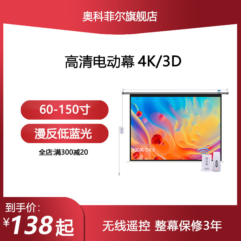 Projector Curtain 4K Motorized Projection Cloth 100 Inch Curtain 110 Inch 120 Inch 150 Inch Pitch Wall Lift Curtain White Glass Fiber Screen Projector Home Screen Projection TV Movie Screen