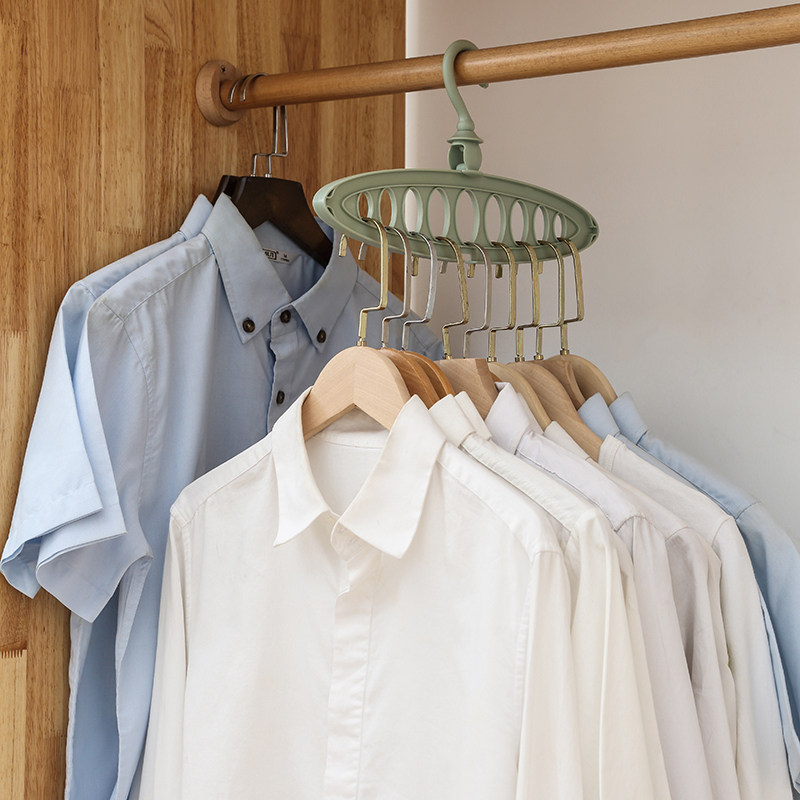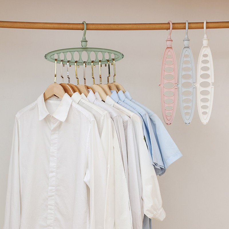 Porous magic hanging clothes hanger can be folded horizontally and vertically hung rotating clothes hanger 9 holes with row hanging containing deviner plastic hanger