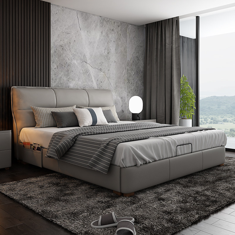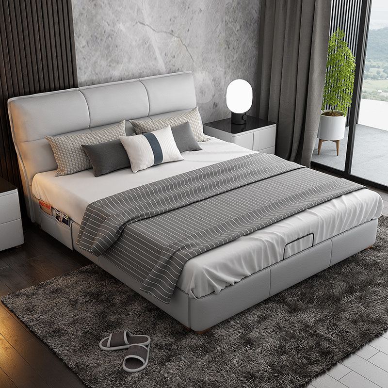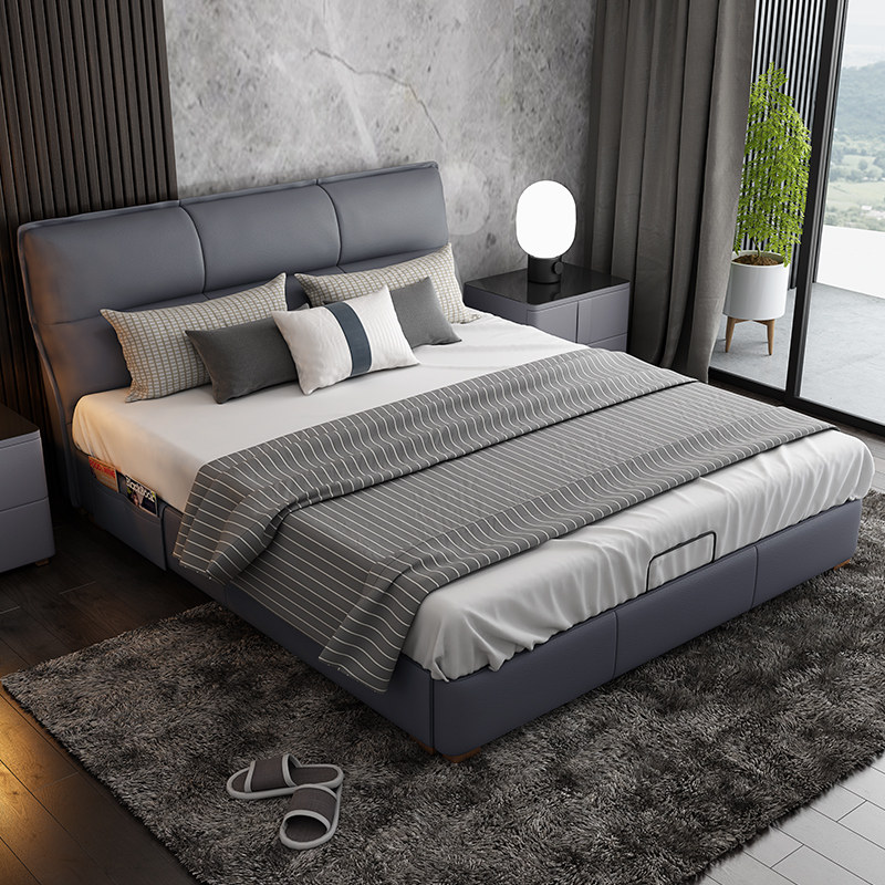 Diep modern minimalist genuine leather bed 1 8 m double bed Nordic light lavish master bedroom with small household type storage wedding bed furniture