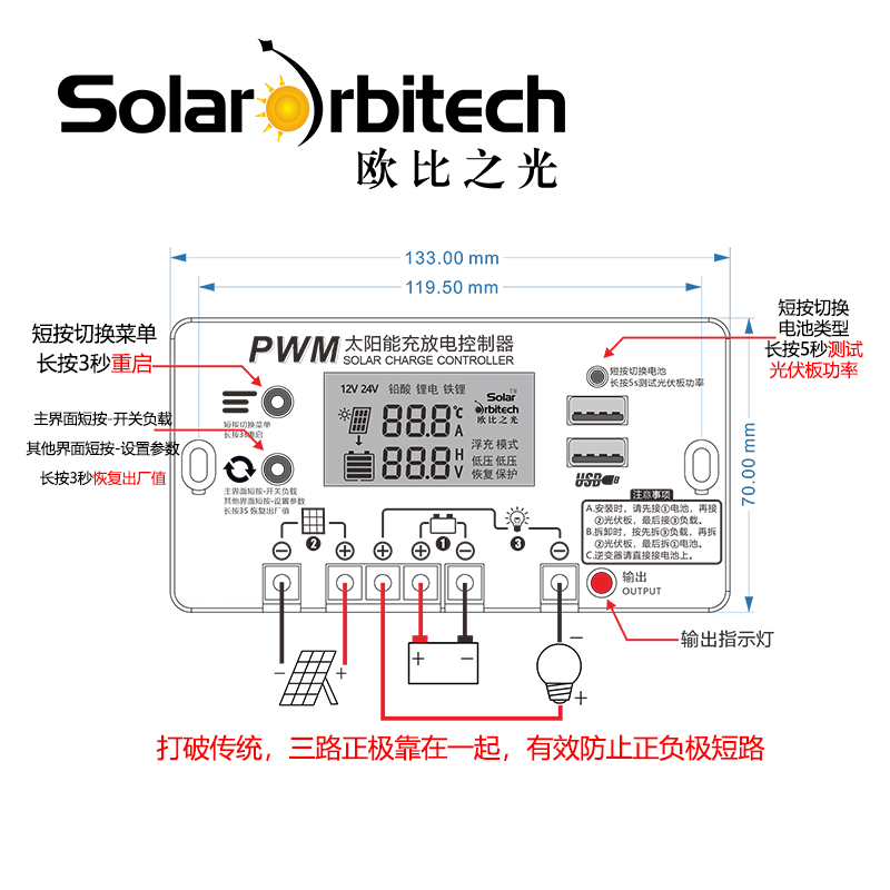 Net red Chinese interface solar controller 12 24v Household Lead-acid lithium battery charging protection module