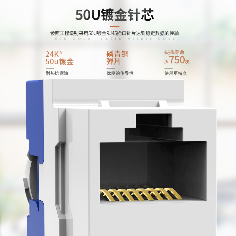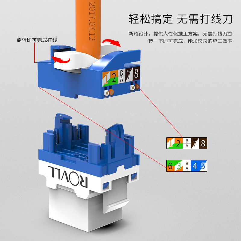 Rofu Internet module exempted from cat6 six types of one thousand trillion network route port engineering class ultra five class 100 trillion 5e non-shielded computer rj45 docking crystal head panel socket control connector