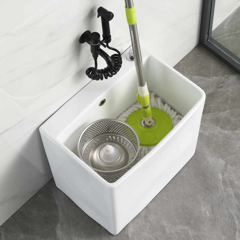 Ceramic dual-drive mop pool balcony rotary faucet mop pool powder room household floor-to-ceiling bucket sink scrubber mop
