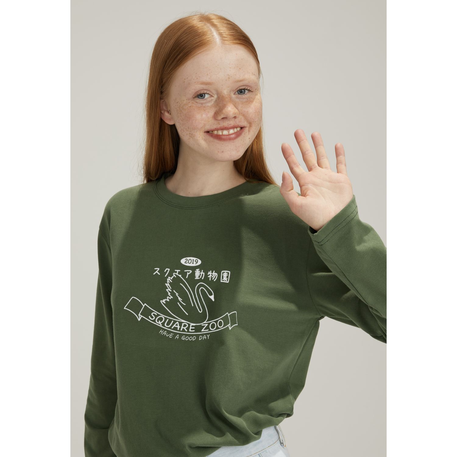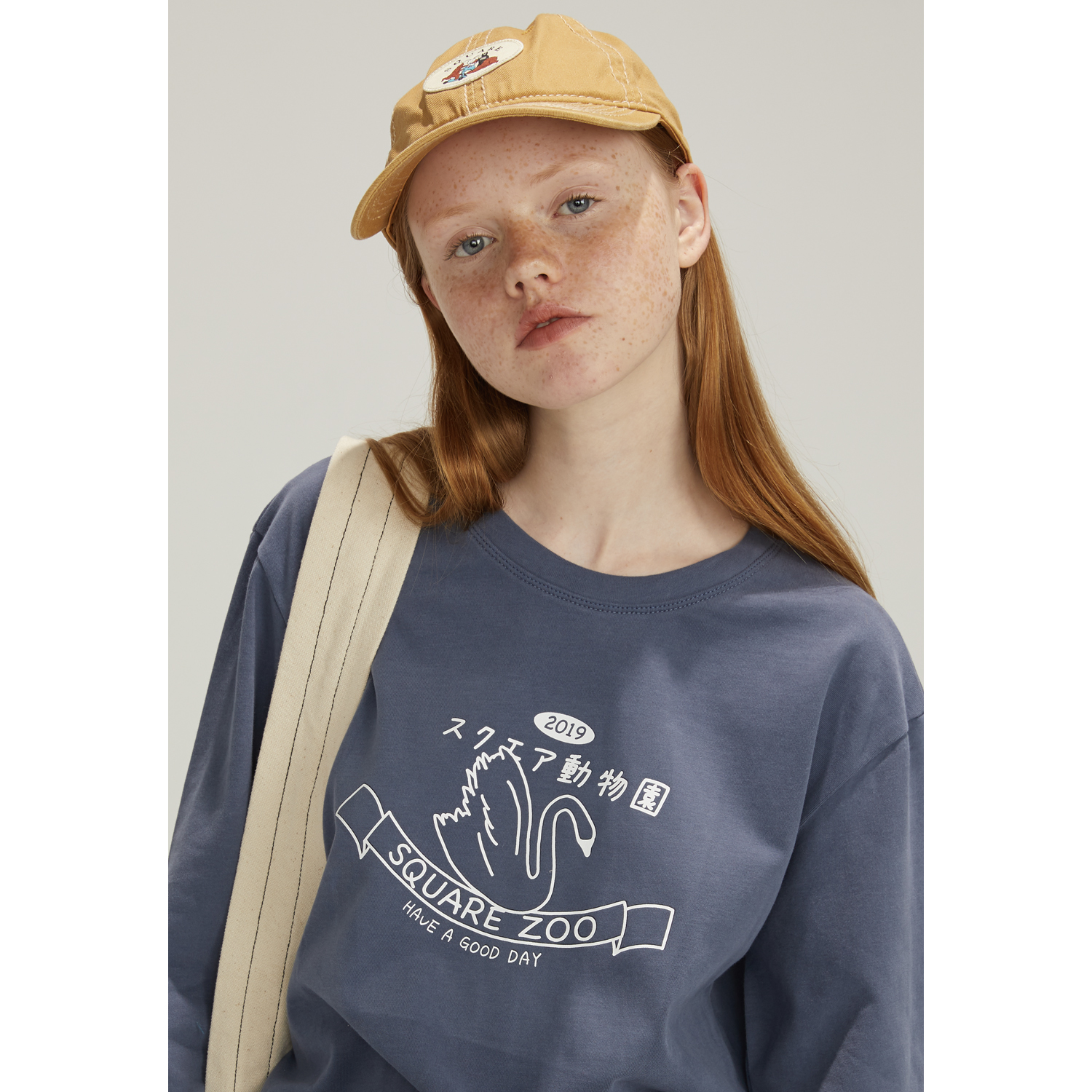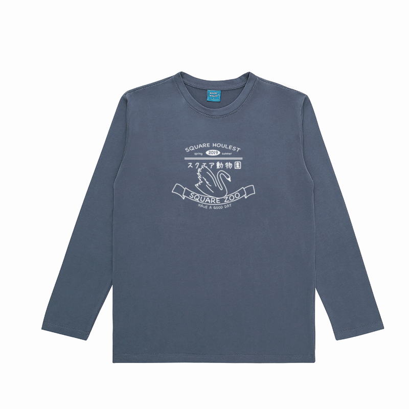 square houlest blue thin letter printing long-sleeved blouse spring and autumn students casual loose sweater