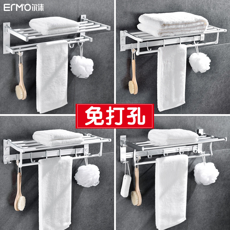Non-perforated powder room toilet shelf Space aluminum bathroom wall towel rack Folding bath towel rack Bathroom set