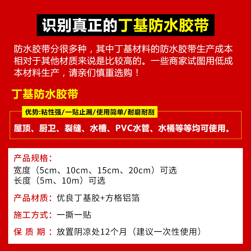 Waterproof Adhesive Tape Roof Roof Roof Top Cracks Anti-Leak Leak Material Powerful Self-Adhesive Coiled Material Butyl Waterproof God-Taobao