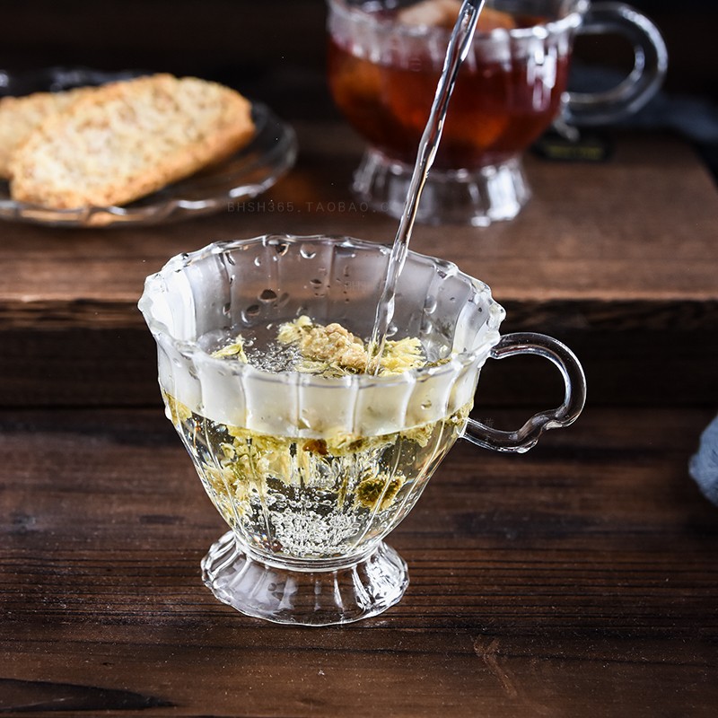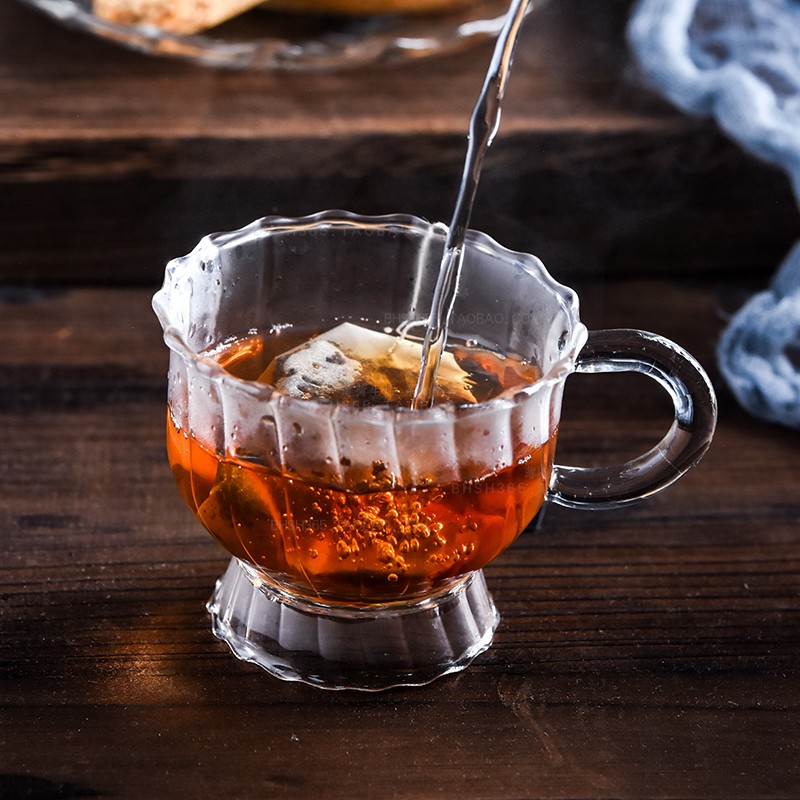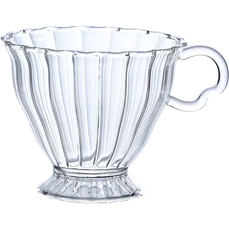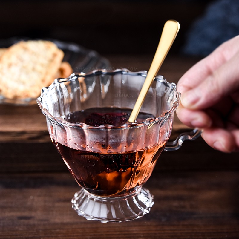 Retro high foot striped glass cup heat resistant glass black tea cup classy elegant coffee cup European style water cup ultra light