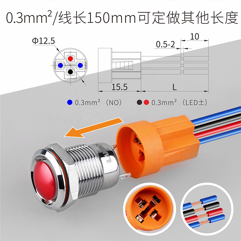 Copper chrome-self-locking-Ball head Ring-Red 5-24V Copper chrome-self-locking-Ball head ring-Green 5-24V Copper chrome-self-locking-Ball head ring-Blue 5-24V