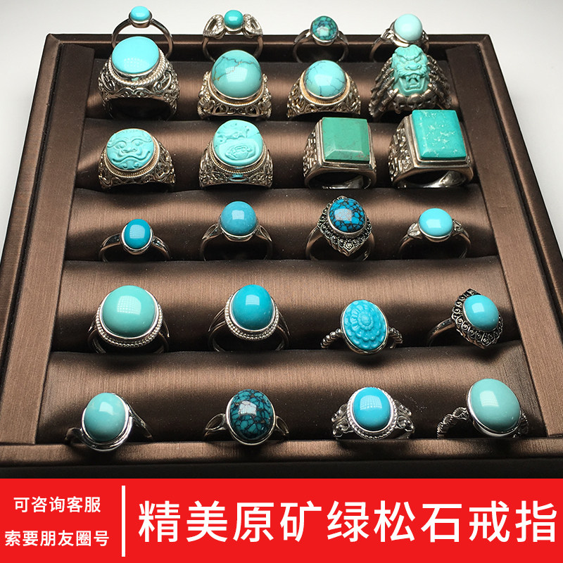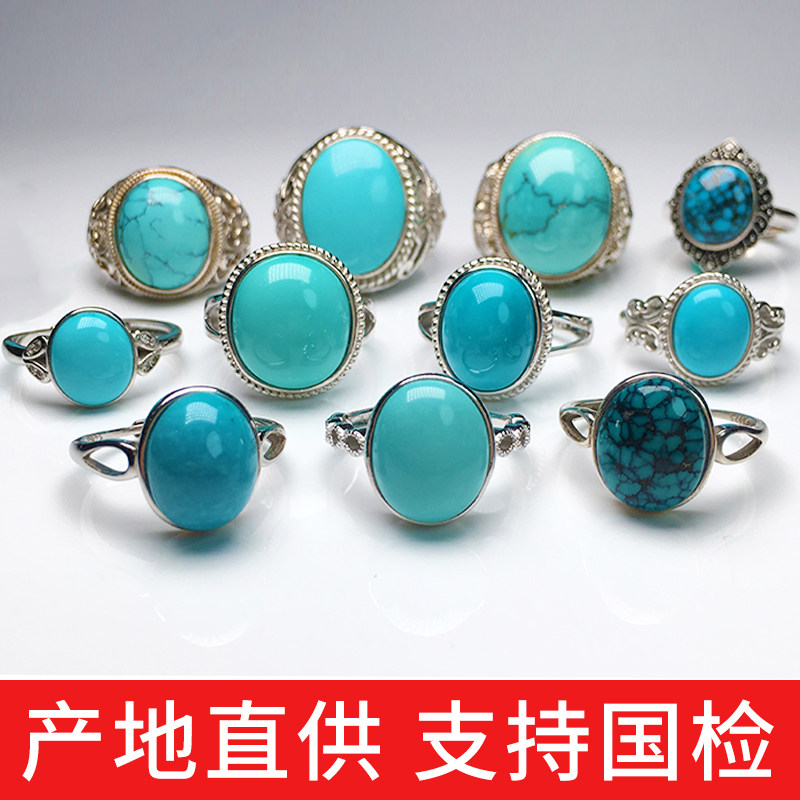 Raw ore turquoise net flower ring female 925 silver inlaid ring open ring set male model carved dragon ring face jewelry