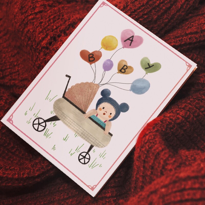 Ai Qing hand-painted baby greeting card freshmen teacher's Day Baby full moon 100-day banquet invitation gift from Cambodia