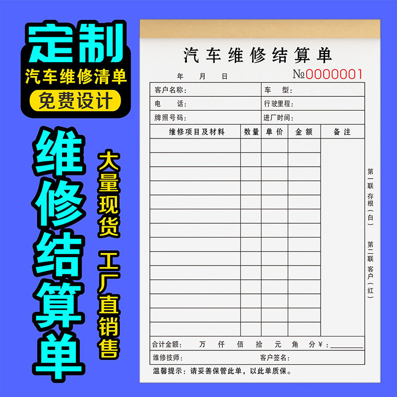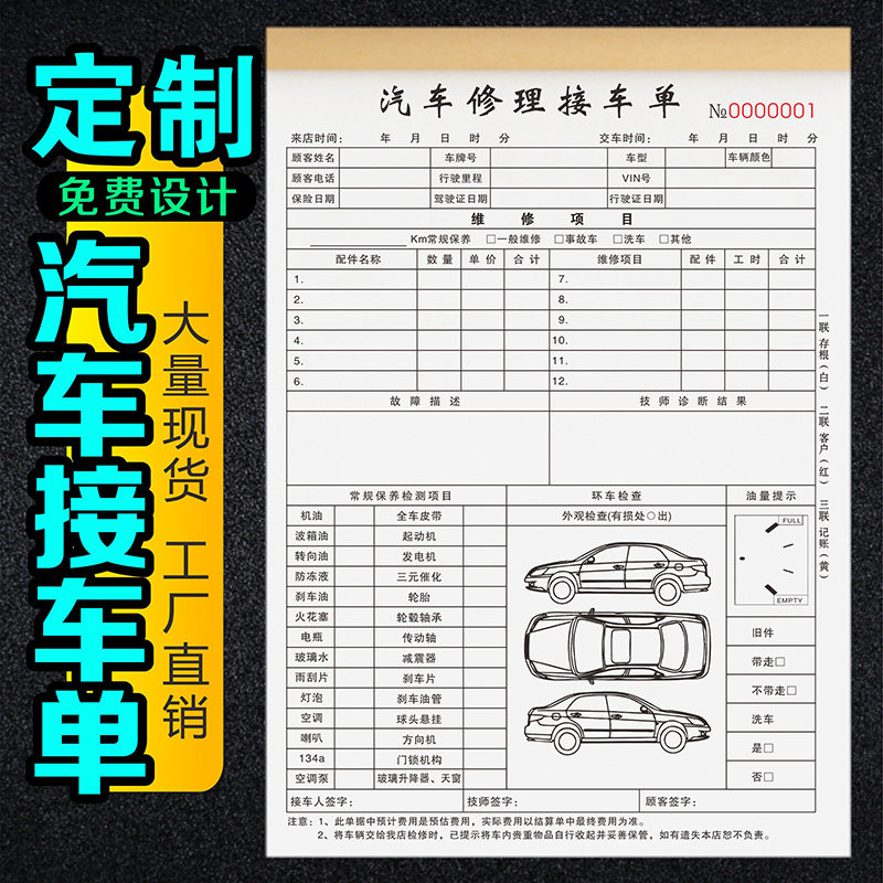 Repair shop pick-up list 4S shop auto repair reception maintenance construction quotation according to repair service form double custom-made vehicle beauty wash dispatch work settlement book auto repair list