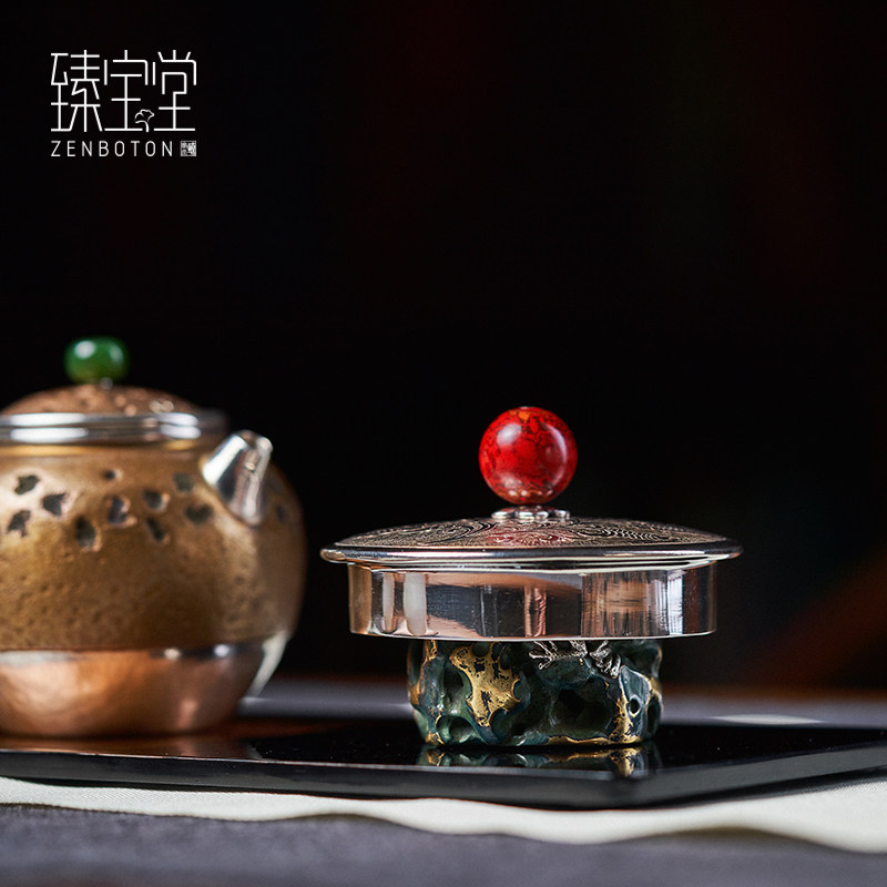 Zhen Bao Hall Cover Pure Copper Handmade Pinch Enamel Pot Lid Rack Taihu Stone Hollow Tea Set Accessories Tea Passage Hem