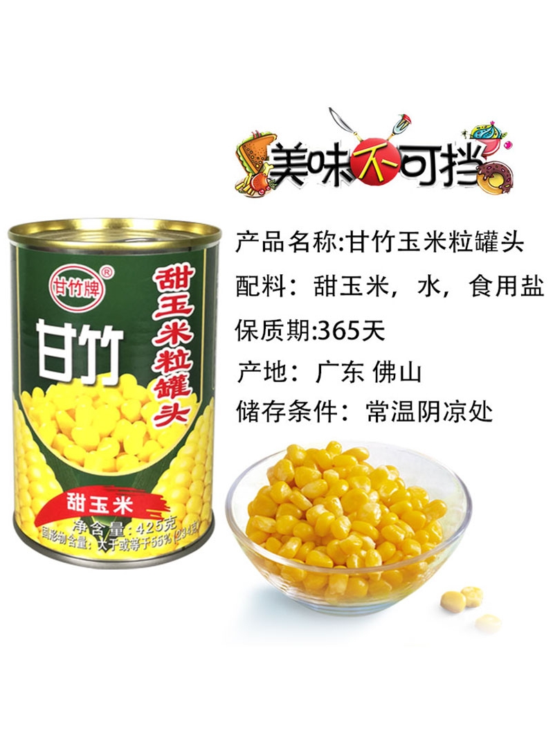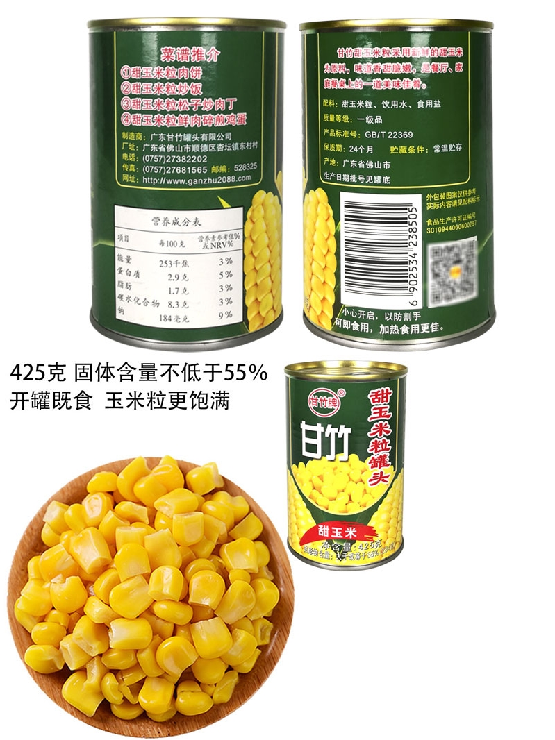 Ganzhu brand sweet corn kernels canned 425g*5 cans open cans and eat to make pizza salad corn baked raw materials